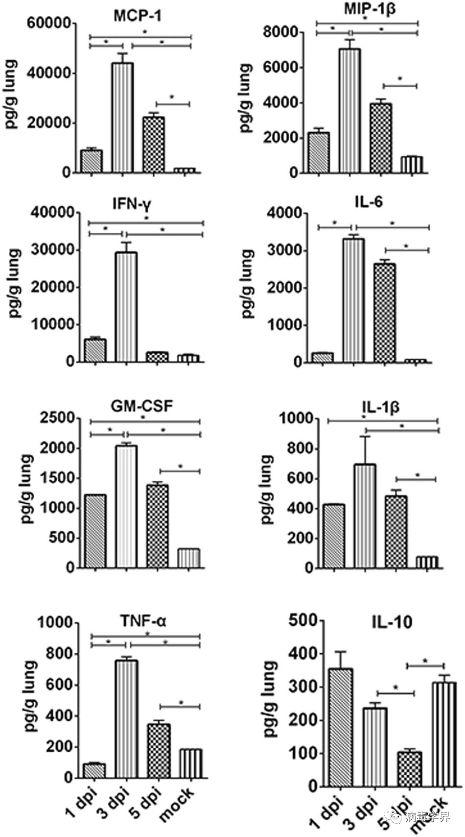 Fig. 2 ?Pro-inflammatory cytokines and chemokines in the lungs of H5N6/GZ14-infected mice