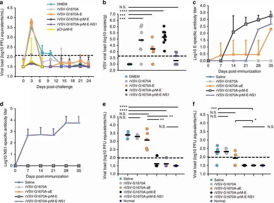 ?Fig .Validation the safety and immunogenicity of rVSV-prM-E-NS1 in A129 mice