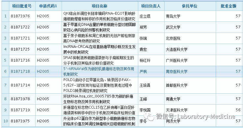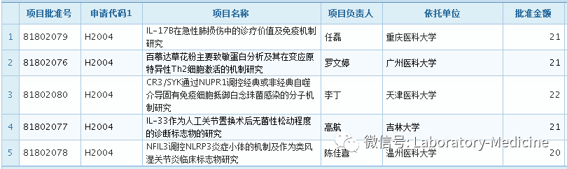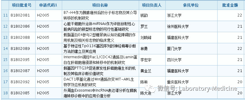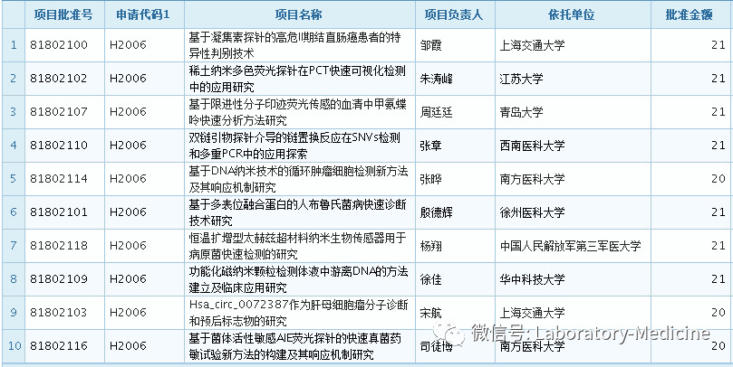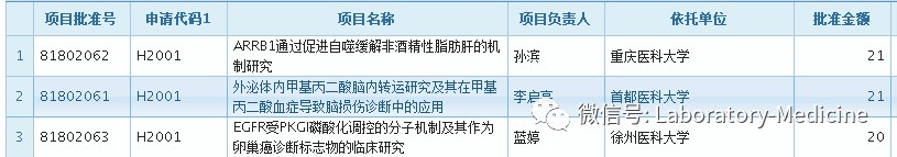 H2007 檢驗醫(yī)學(xué)其他科學(xué)問題 面上項目(3項)