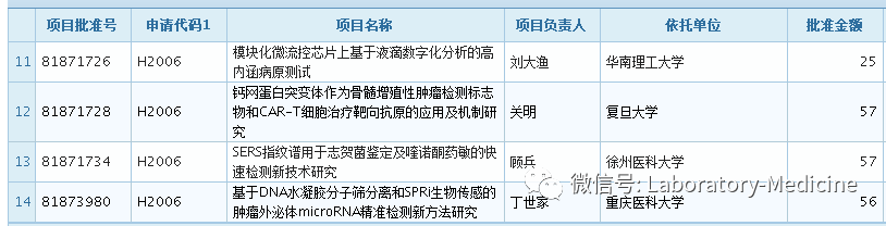 H2006 臨床檢驗新技術(shù) 面上項目(14項)