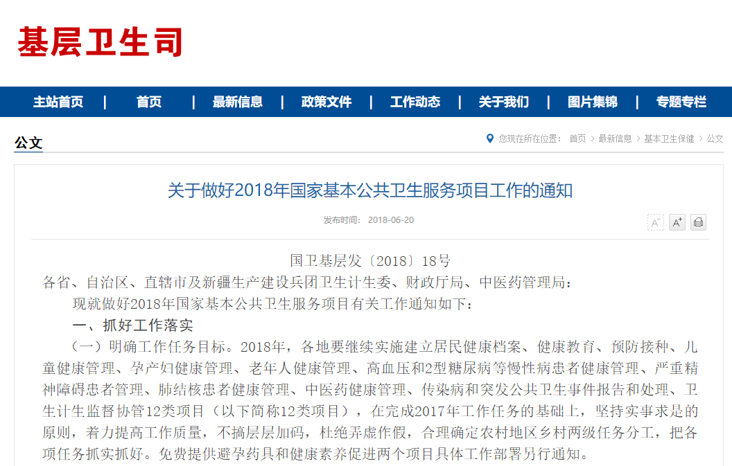 關(guān)于做好2018年國(guó)家基本公共衛(wèi)生服務(wù)項(xiàng)目工作的通知