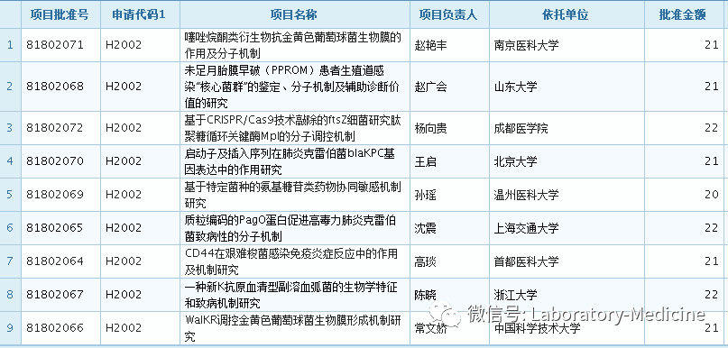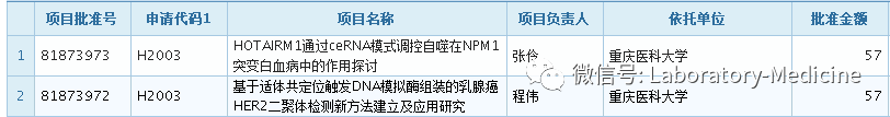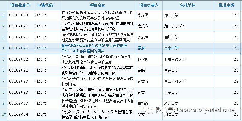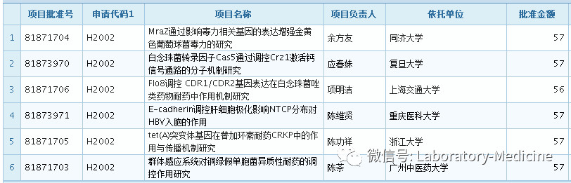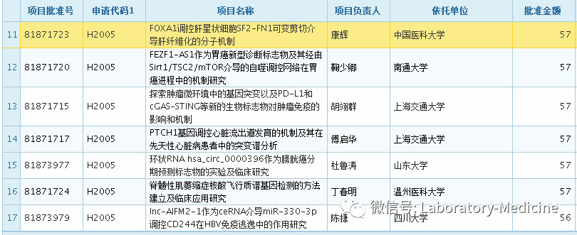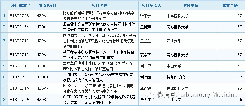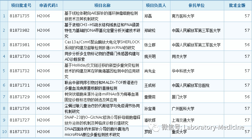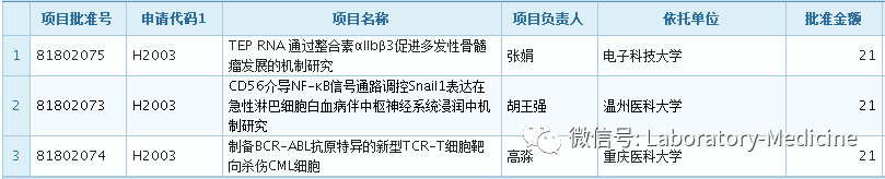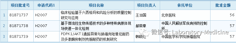 H2007 檢驗醫(yī)學(xué)其他科學(xué)問題 面上項目(3項)
