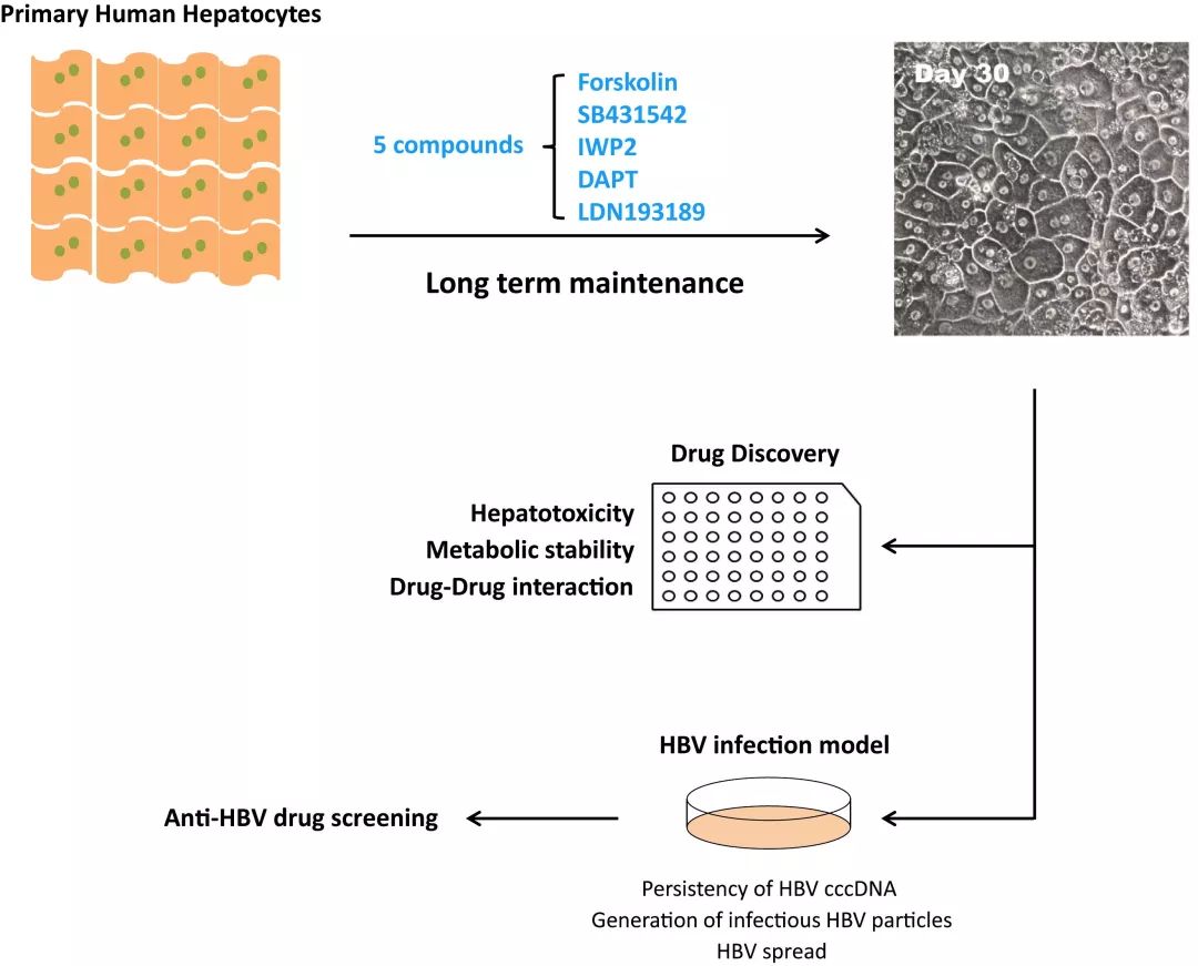 相形之下,丙型肝炎病毒的發(fā)現(xiàn)雖然晚于乙肝病毒,但基于有效的體外病毒感染模型,已成功篩選并獲得治愈丙肝的藥物。5C培養(yǎng)條件下的肝細胞支持乙肝病毒的高效感染,并能夠長期產(chǎn)生cccDNA,可作為理想的藥物篩選模型,為治愈乙型肝炎帶來希望。